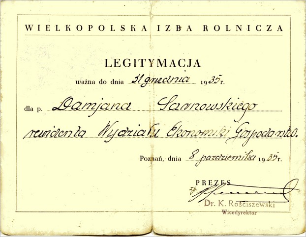 w Wielkopolskiej Izbie Rolniczej, zamieszczamy skany umowy o pracę i legitymacji pracownika Izby. Pan Damian Sarnowski był początkowo